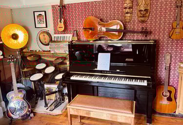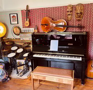 I work in various settings in and out of academic institutions and in my home studio in Herne Hill. I tutor all ages and abilities, from pre-school ukulele, to folk guitar enthusiasts, music production and songwriting as well as jamming and performing.