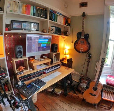 I work in various settings in and out of academic institutions and in my home studio in Herne Hill. I tutor all ages and abilities, from pre-school ukulele, to folk guitar enthusiasts, music production and songwriting as well as jamming and performing.